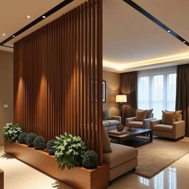 Wooden/laminate partitions add a rich, contemporary feel to your home while offering visual separation between spaces like living and dining. They can be designed as full panels, slat-style dividers, or open shelves, depending on the style you prefer. Durable, stylish, and easy to maintain.